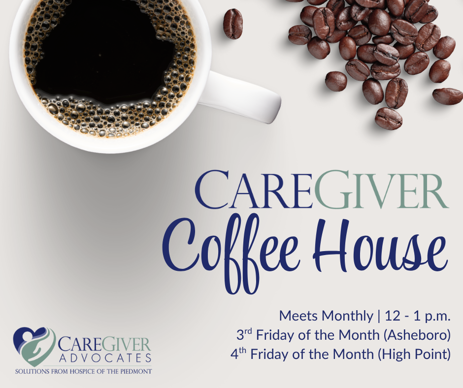 Caregiver Coffee House – High Point meets monthly at Hospice of the Piedmont. Click here to learn more.